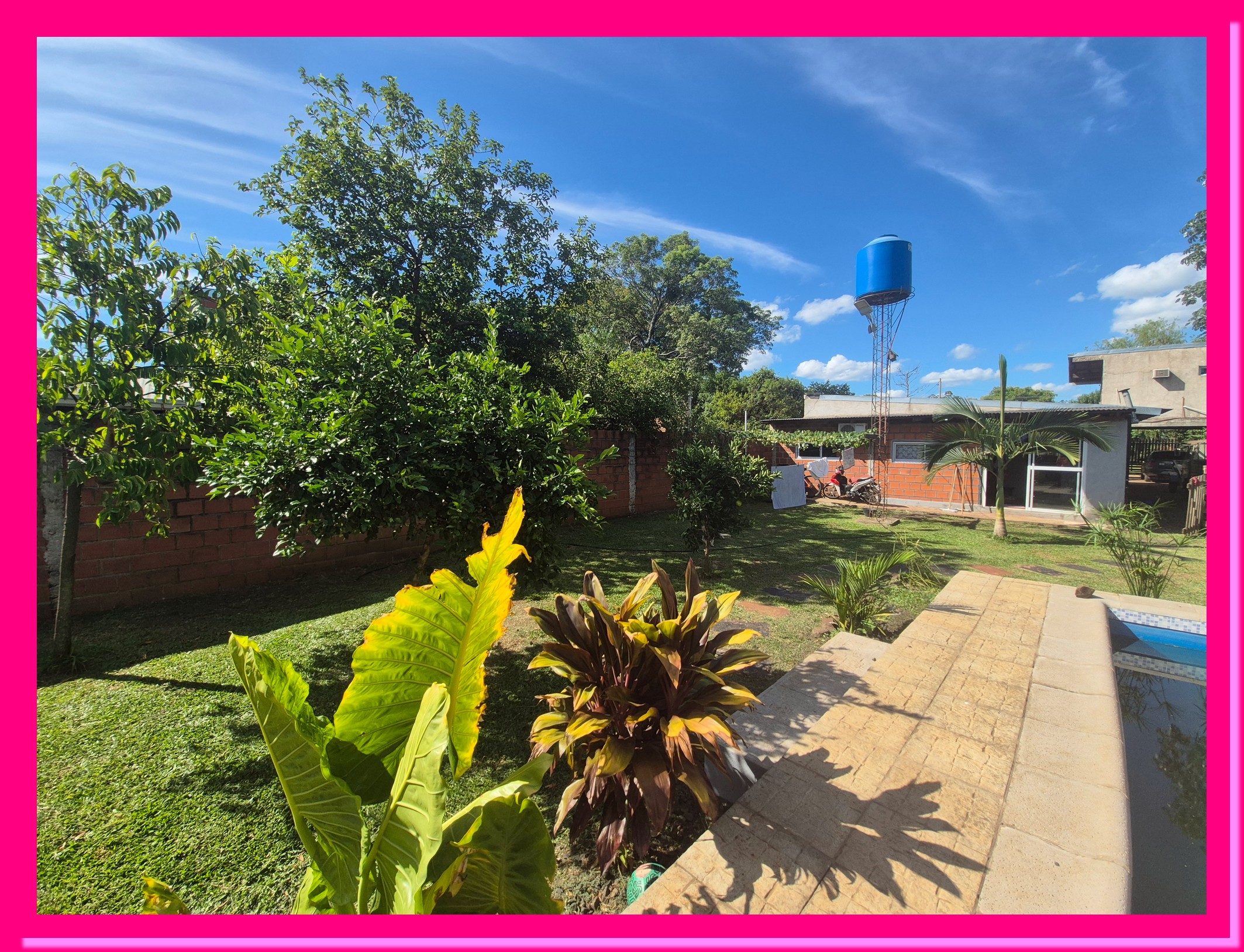 Espacios de Recreación: Piscina de material, amplio patio parquizado y segundo baño social en construcción (sector externo).