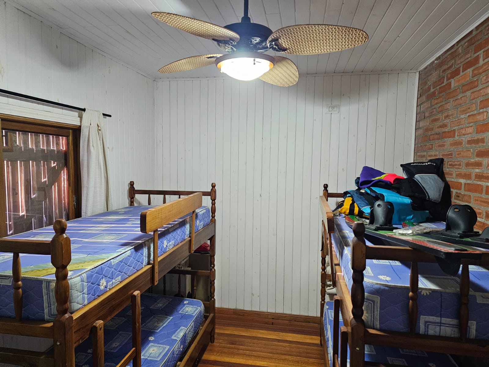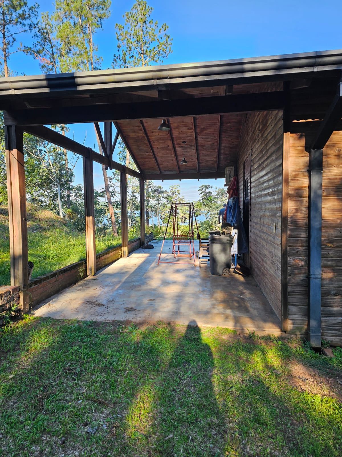 Casa tipo chalet de diseño de madera. Barrio residencial cercado, familiar. amplio parque. vista al arroyo Yabebery. 4 dormitorios y dos baños. Hogar.